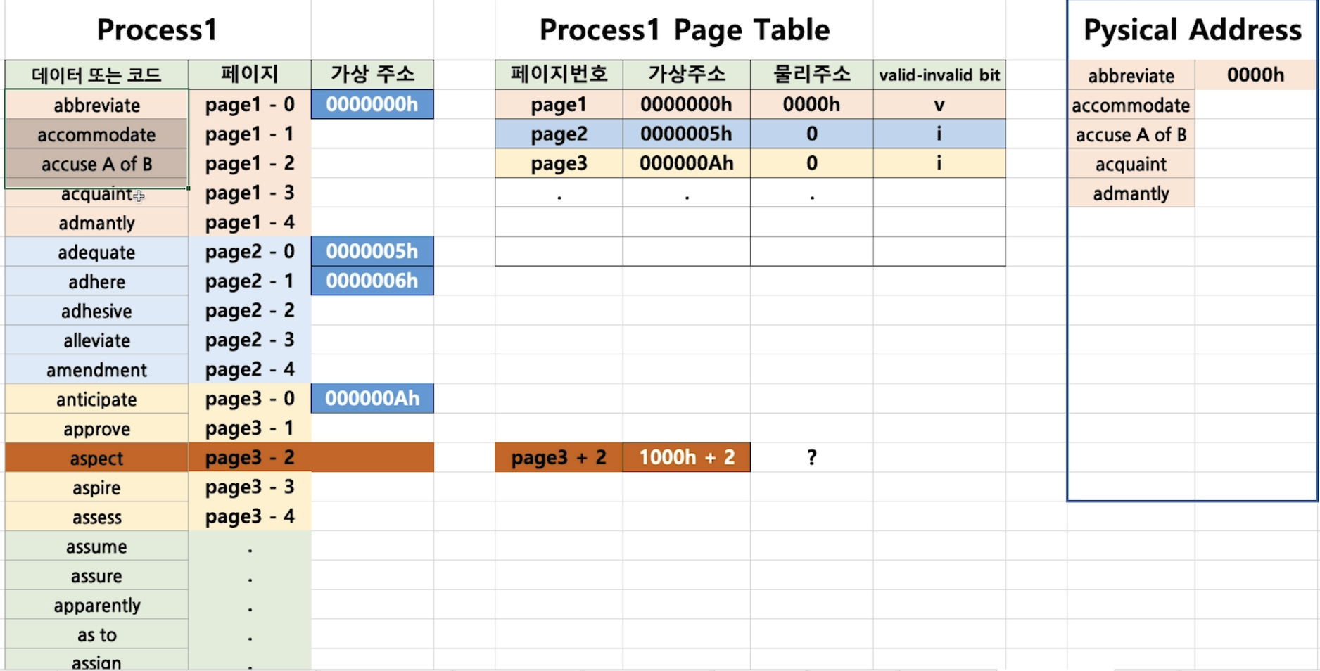 - 해당 페이지 번호를 찾아서 그 페이지 번호와 Offset 정보를 갖고 물리 주소에 정보(데이터)를 갖고 온다.