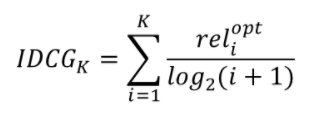 - 가장 이상적인 추천 조합 대비 현재 모델의 추천 리스트가 얼마나 좋은지를 나타내는 지표